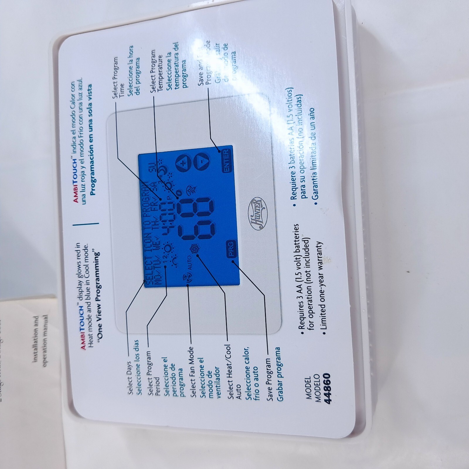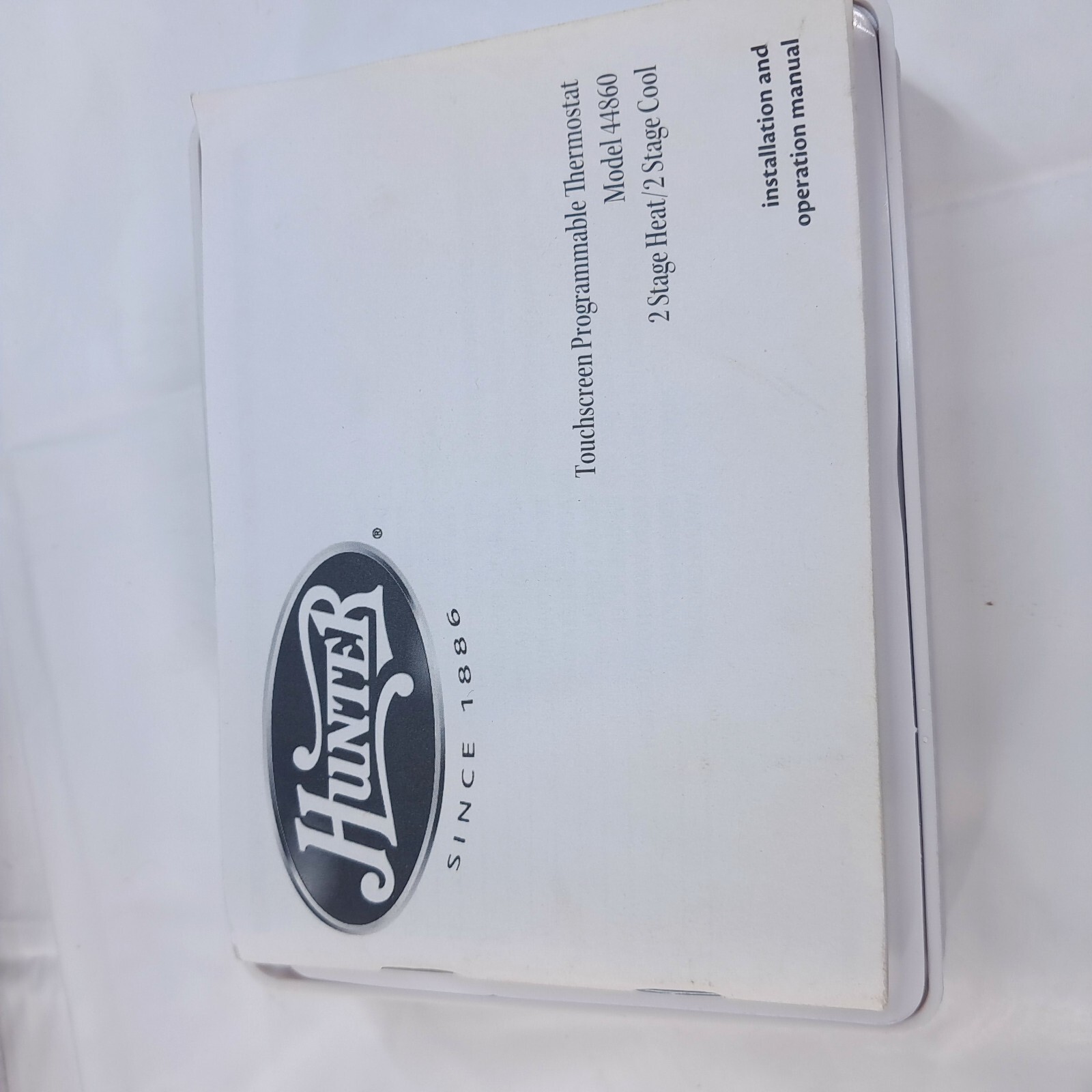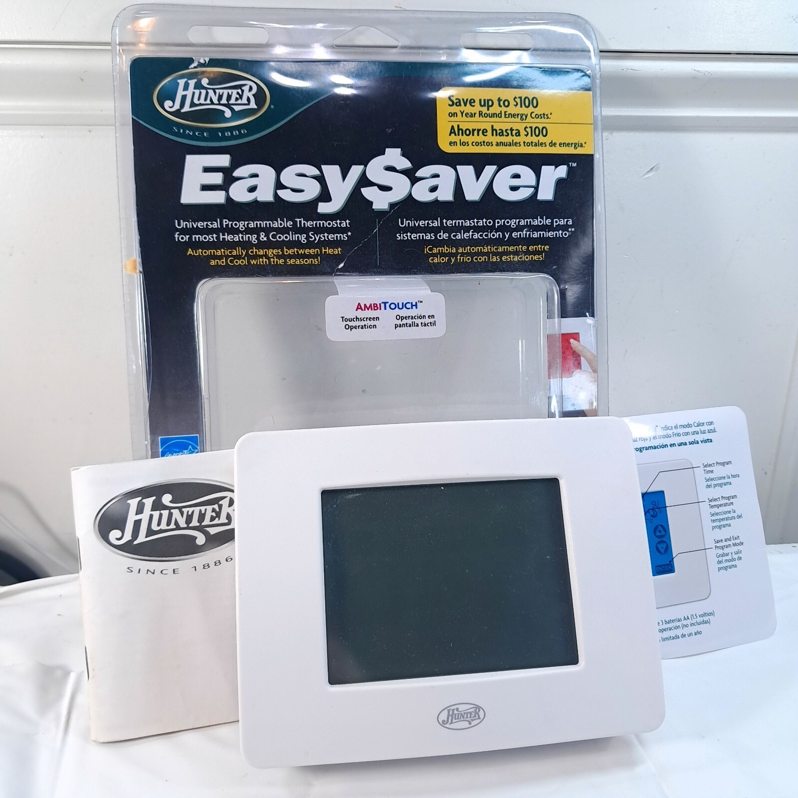 Hunter Easy Saver 44860 Universal Thermostat Programmable Touchscreen heat cool Not sure if this was ever used. Does not include screws, but has manual and unit and packaging as shown. See pics.