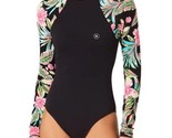 - Hurley Womens Swimsuit Black Multicolor Floral Long Sleeves UPF 50+ Stretch