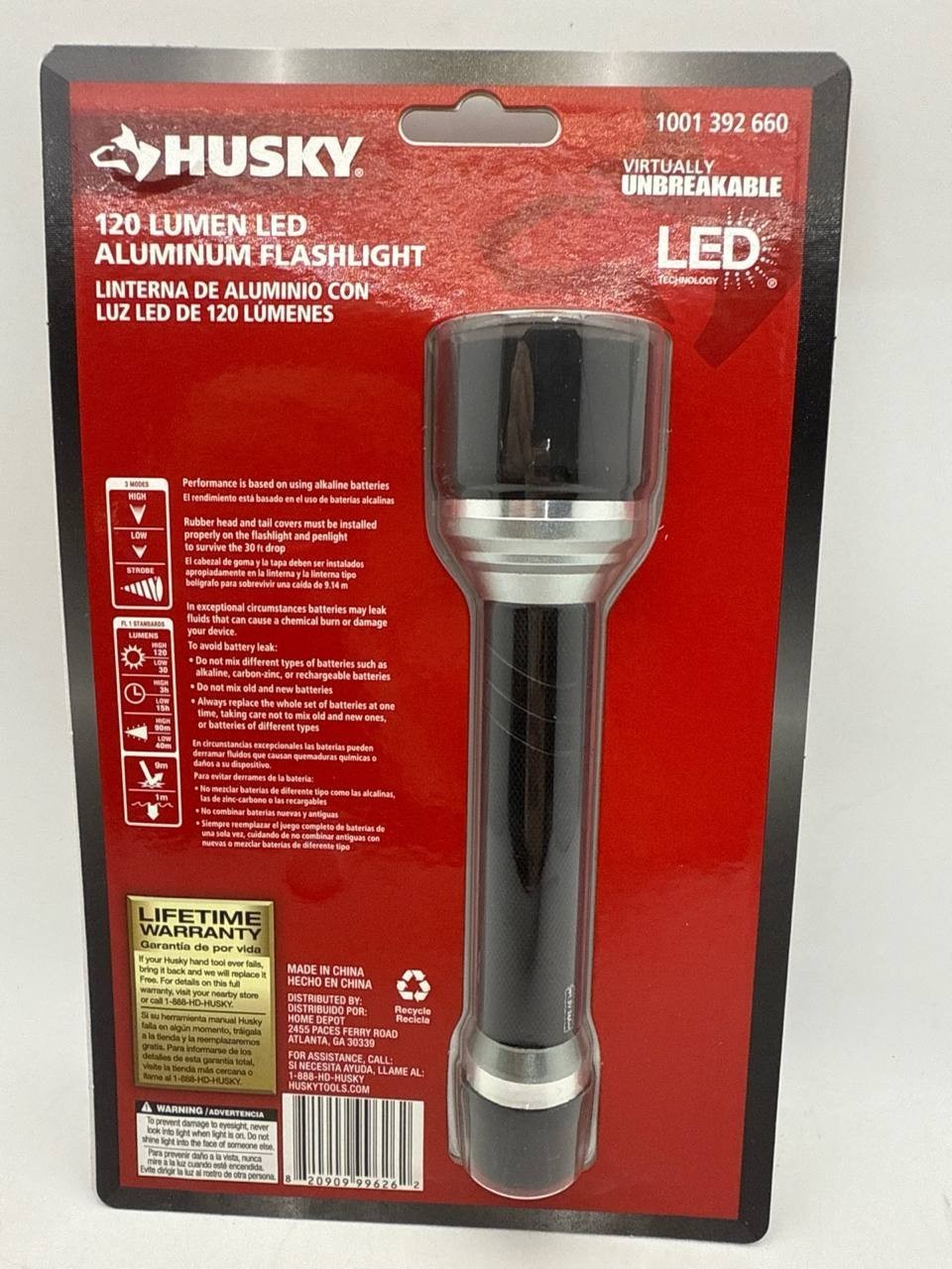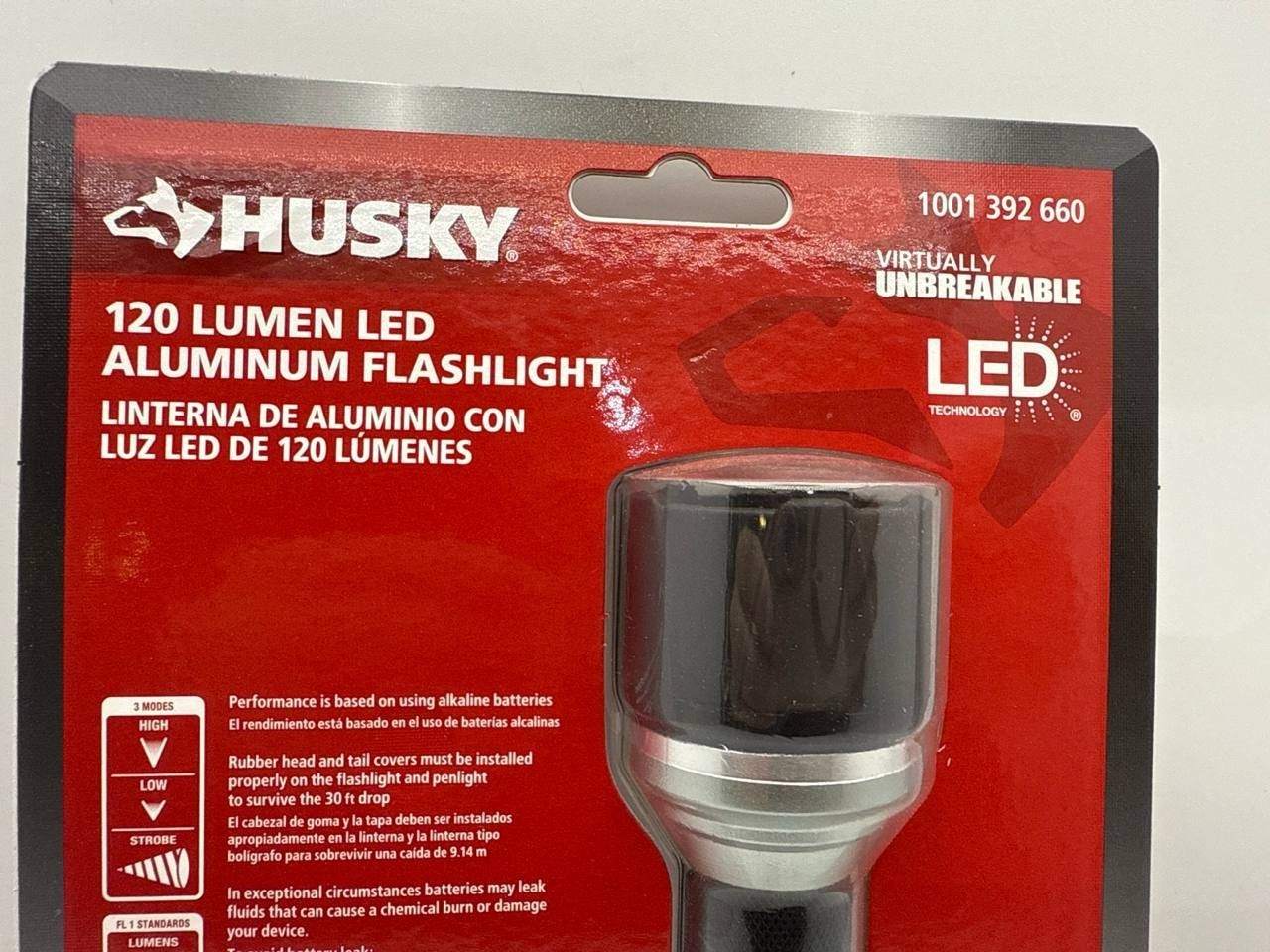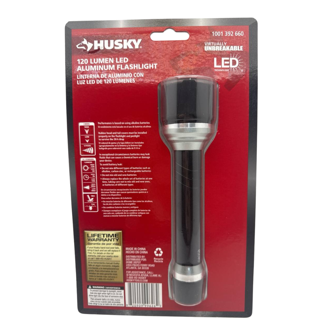 Husky 120 Lumen LED Aluminum Flashlight Unbreakable High Power With Batteries