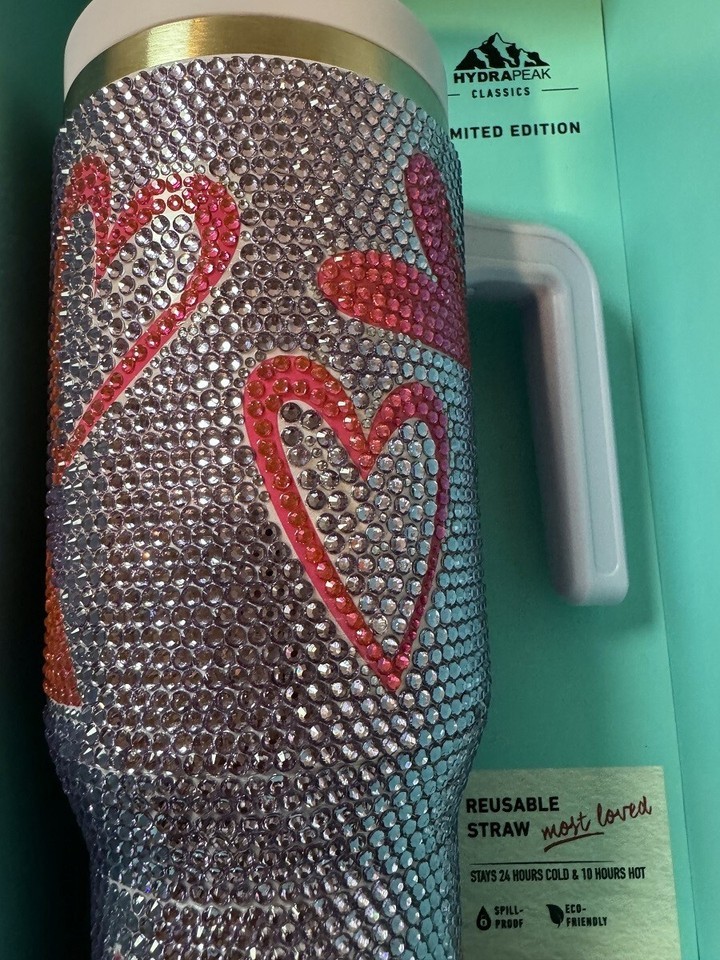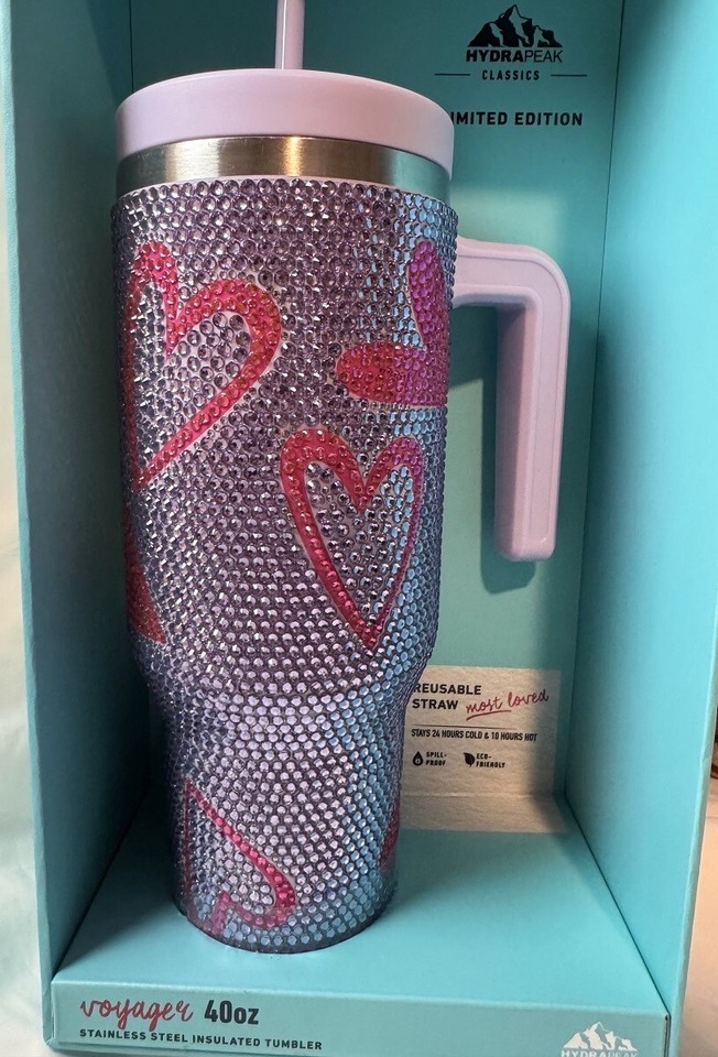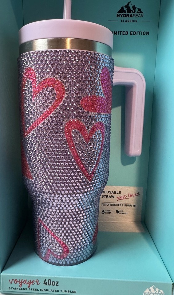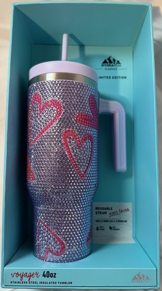 - HydraPeak VOYAGER 40 oz Bling Hearts Stainless Steel Tumbler Limited Edition