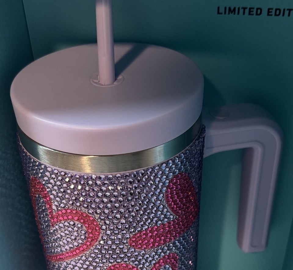 The tumblers sparkling rhinestone-covered exterior catches the light with every move, and with a generous 40-ounce capacity, its engineered with top-tier double-wall vacuum insulation to keep your drinks cold for up to 24 hours or hot for up to 10, ensuring your beverage stays at the perfect temperature all day.
