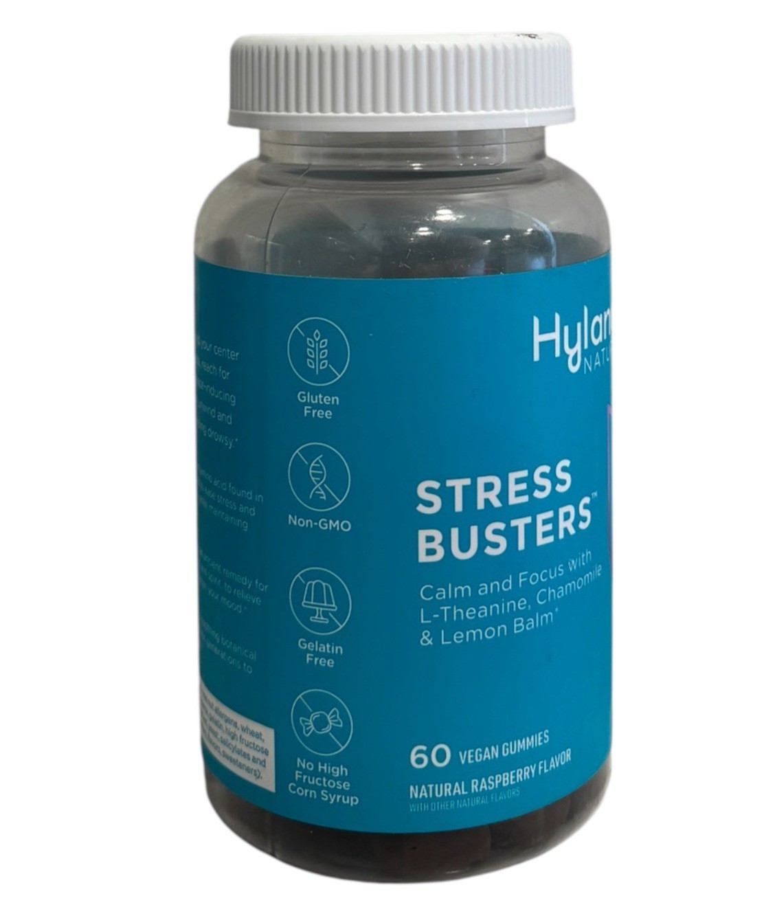 Hyland's Naturals Stress Busters Calm Focus, 60 Vegan Gummies Raspberry Flavor. Some packaging may show slight shelf wear.
