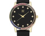 This is for a brand new with tags I.N.C. Women's Black Faux Leather Strap 38mm Watch with Interchangeable Bezels in fuchsia gift box Multicolored crystals encircle the sparkling dial of this joyful black and gold-tone timepiece from I.N.C. International Concepts. Movement: three-hand quartz Case: round gold-tone mixed-metal; 38mm with interchangeable bezel Strap: black faux leather with buckle closure Dial: black with crystal indices Water resistance: not water resistant
