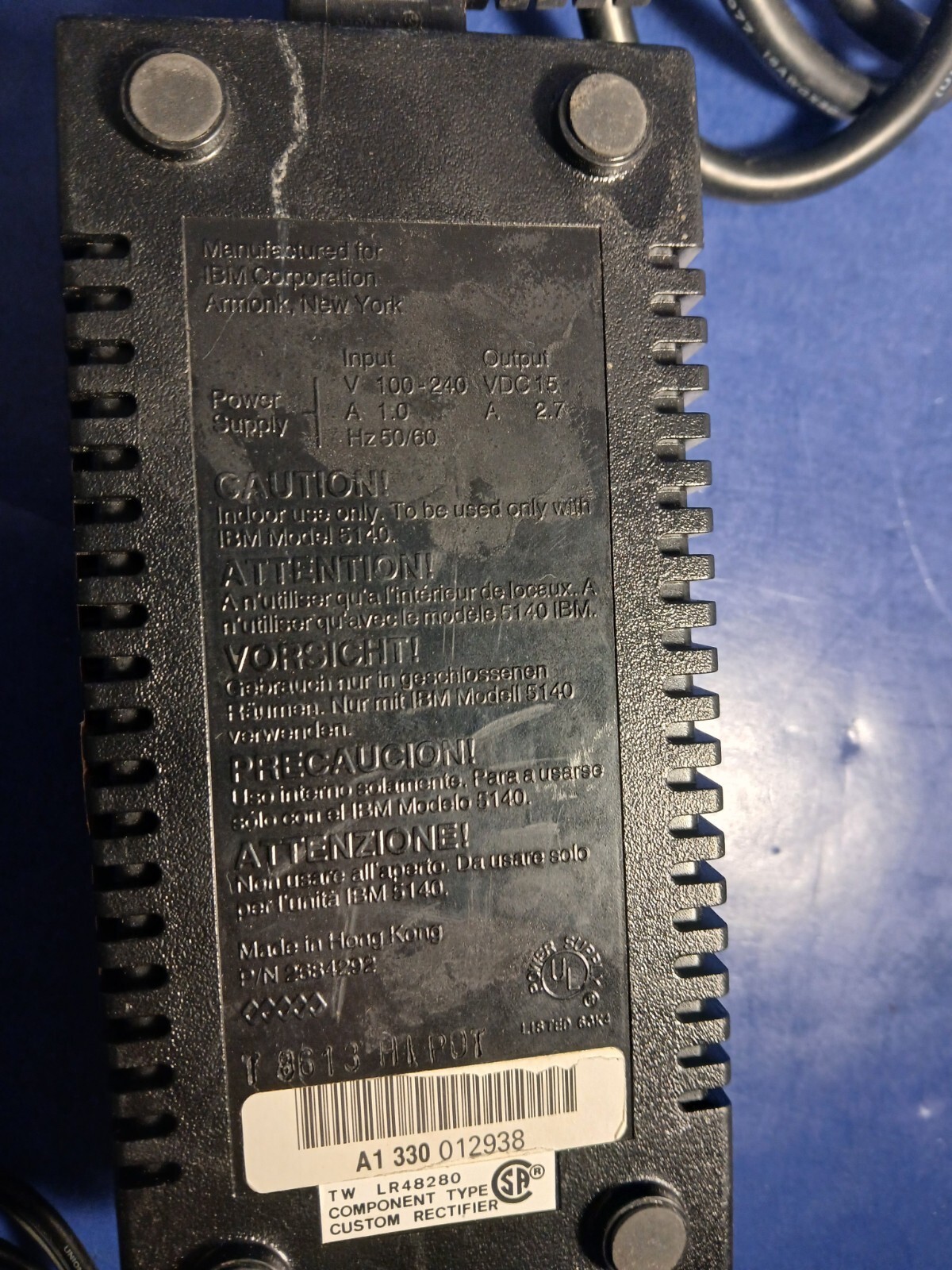 This is a IBM 100-240V Output 15V DC Power Supply Adapter. Plugged in and green light lit up. Ships fast!