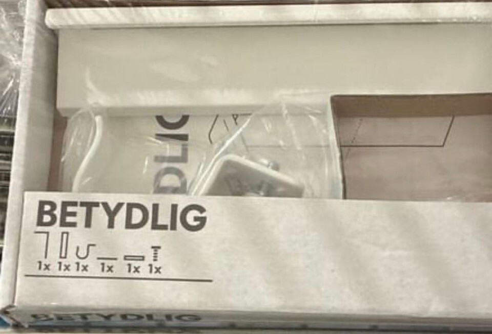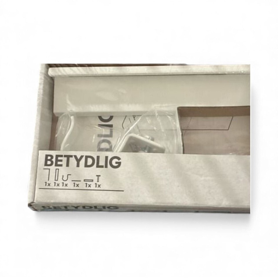 IKEA Betydlig adjustable curtain rod holder and bracket in white. This set is designed for easy installation and allows for flexible positioning of curtain rods to suit various window treatments. The package includes all necessary components for assembly,