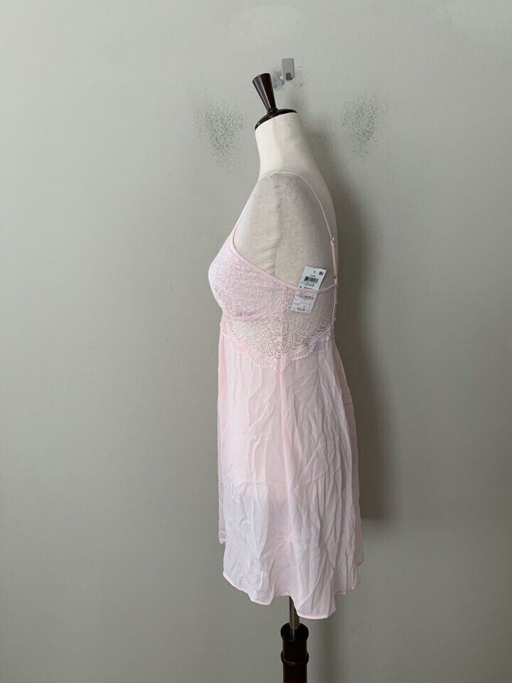 Length: Hits at mid-thigh; approx. 33-1/2" long Texture: Woven fabric Special Features: Lace bodice; U-back with triple-strap detail Closure: Pullover styling Neckline: V-neckline Sleeve Length: Adjustable straps Size Medium Pit to pit 16" and stretchy Mary's rose pink Style 100078925MS Brand new with tag