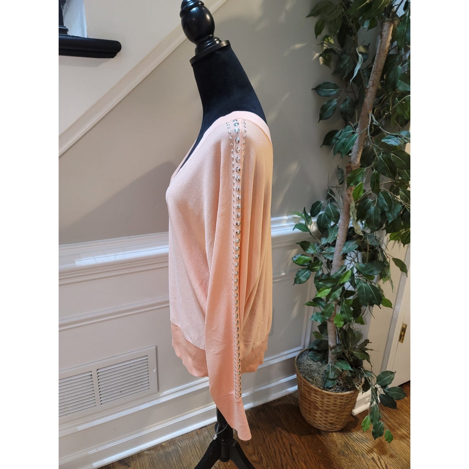 - INC International Concepts Sweater Women's XL Peach V Neck Studded Sleeves