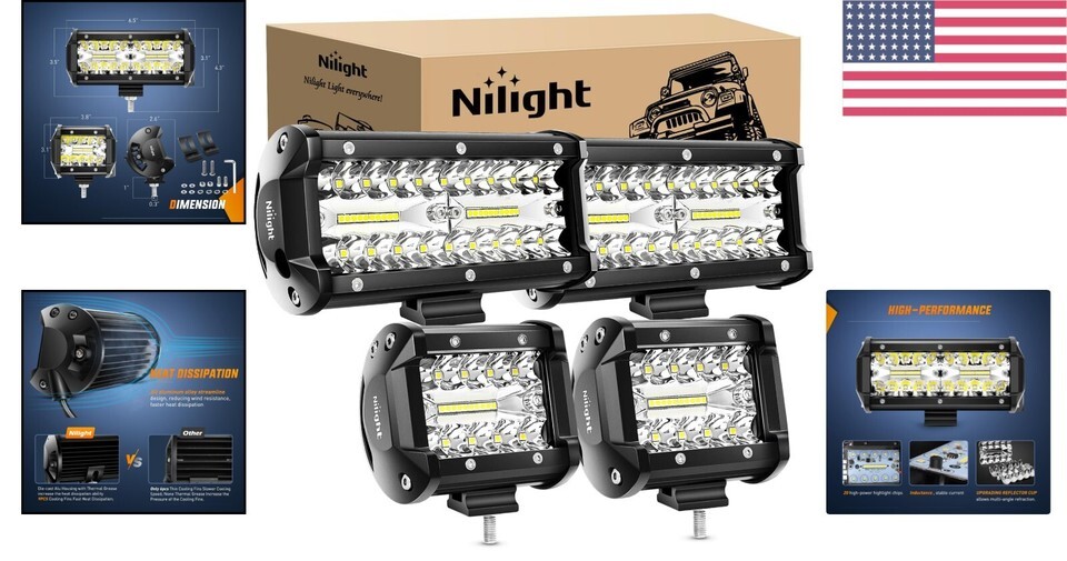 Complete Package: Includes two 60W LED Pods, two 120W LED Lights, a wiring harness, and mounting brackets to effortlessly enhance your lighting experience.
