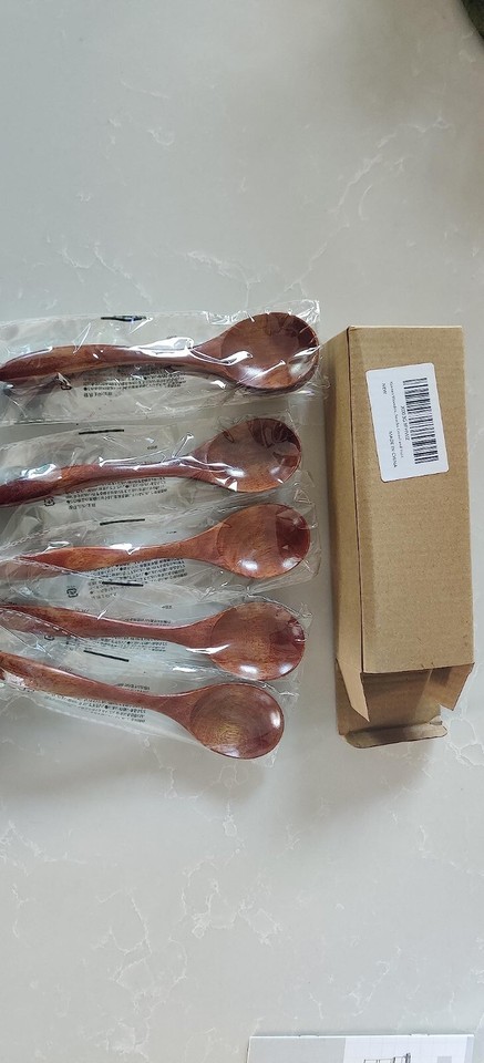 IQCWOOD Korean Wooden Spoon, 6-Piece Wooden Spoons 7.1"L x 1.8"W
