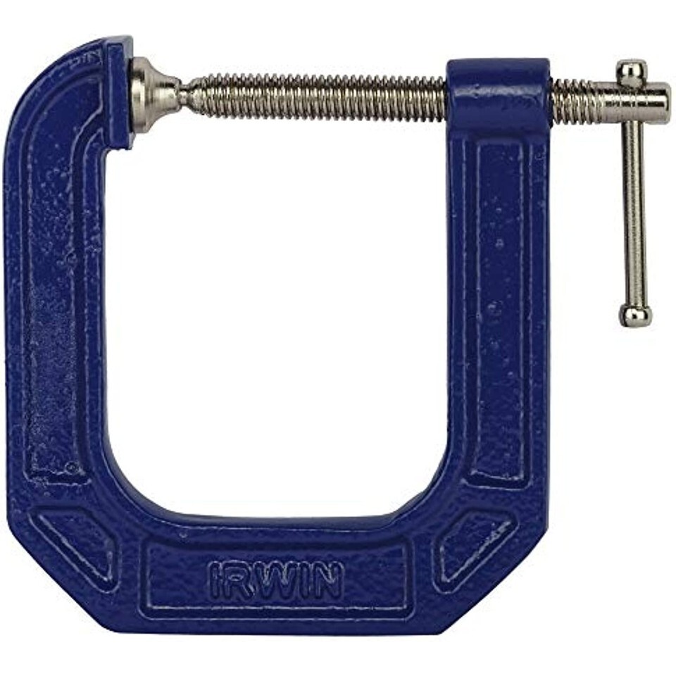 Deep throat lets you use a smaller c-clamp on a larger project. Larger handle makes it easier to apply more clamping pressure with less hand fatigue. Double-threaded screw reduces screw deflection and drift for faster clamping and allows you to apply 50% more clamping force than with most clamps. C-clamp designed for woodworkers, carpenters, welders, builders, or do-it-yourselfers. Suitable for general clamping needs. Larger swivel pad reduces marring on work surface and increases stability. IRWIN Tools QUICK-GRIP 100 Series Deep Throat C-Clamp, 2-inch by 3 1/2-inch Throat (225123)