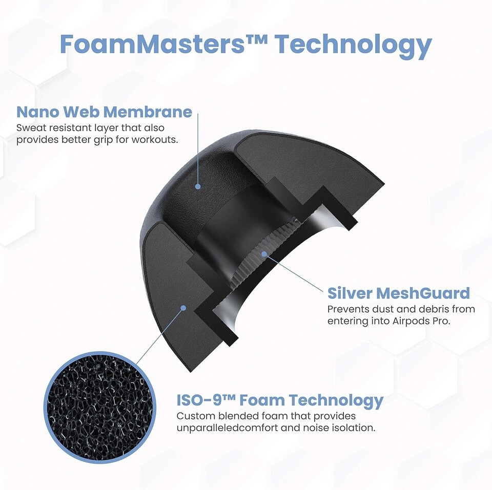 - ISO-9 Technology Memory Foam Tips for Secure Fit on AirPods Pro – Black Magic