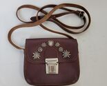 - ITALY Brown Leather Crossbody Bag Purse Silver Tone Embellishments Small Adjust