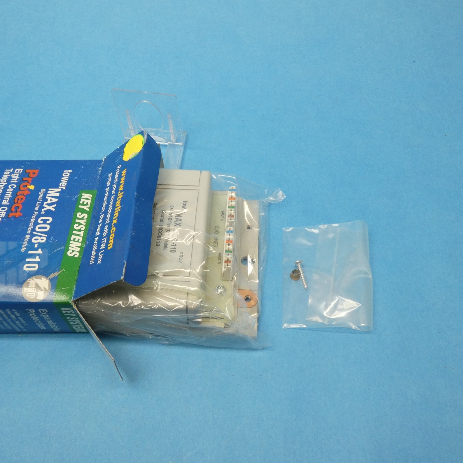 Provides protection for 8 central office lines using a combination of 110 punch down blocks and RJ-45 connector jacks