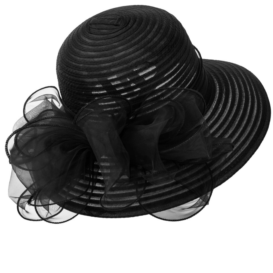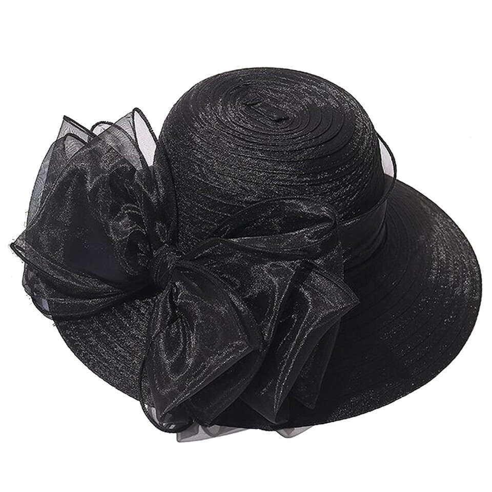 IZUS Lady Derby Straw Hat Organza Bowknot Women Church Cloche Hat