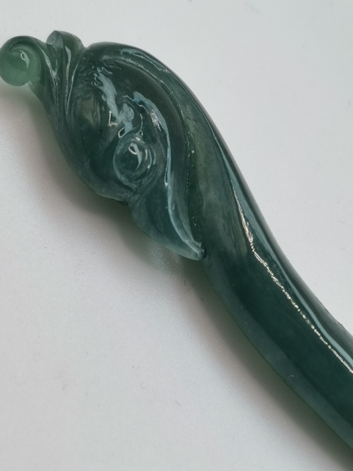 Ice Bluish Green Natural Jadeite Jade Phoenix Hair Pin # 12 gram # 61 carat