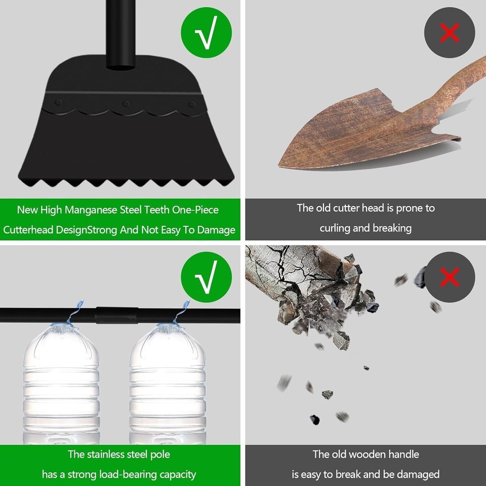 DURABLE AND RELIABLE: Our shovel is made of high-quality steel, which can withstand the challenge of harsh conditions and will not rust or deform in different environments. The shovel blade is made of sawblade steel, hardened and tempered at high temperature, very hard and effective in cutting through ice already other hard objects. It is perfect for all kinds of yard cleaning tasks