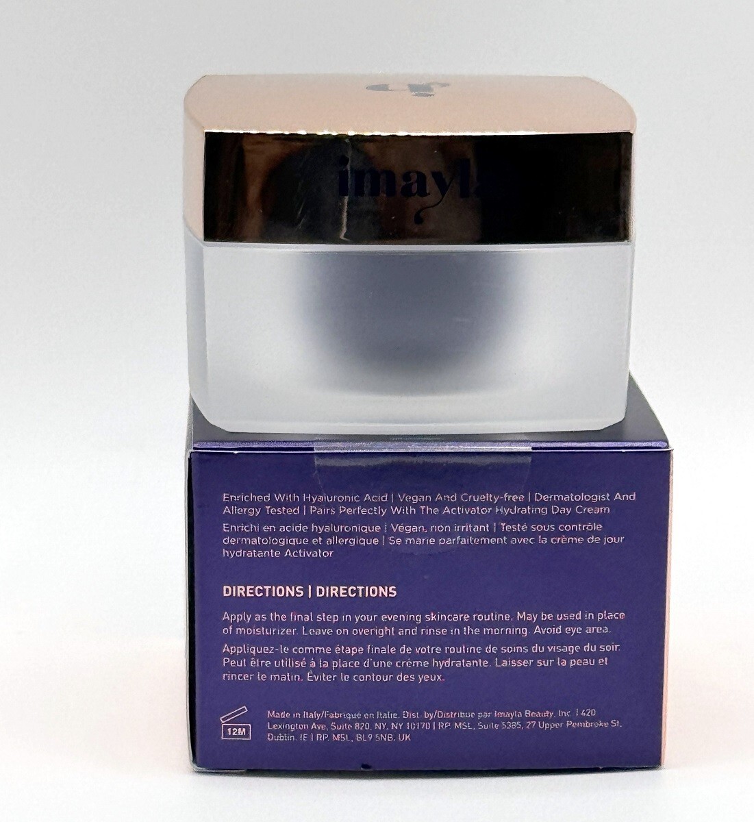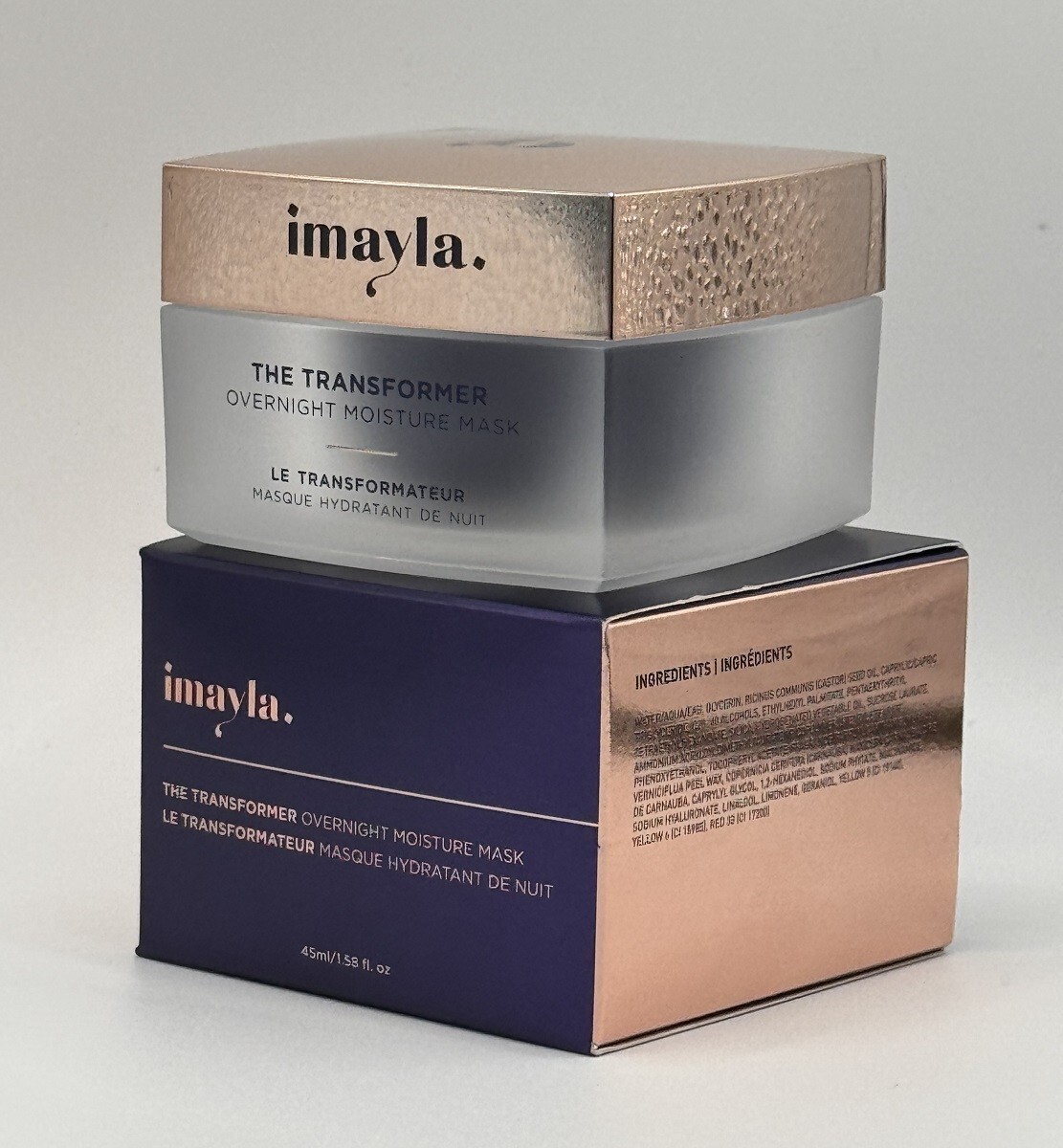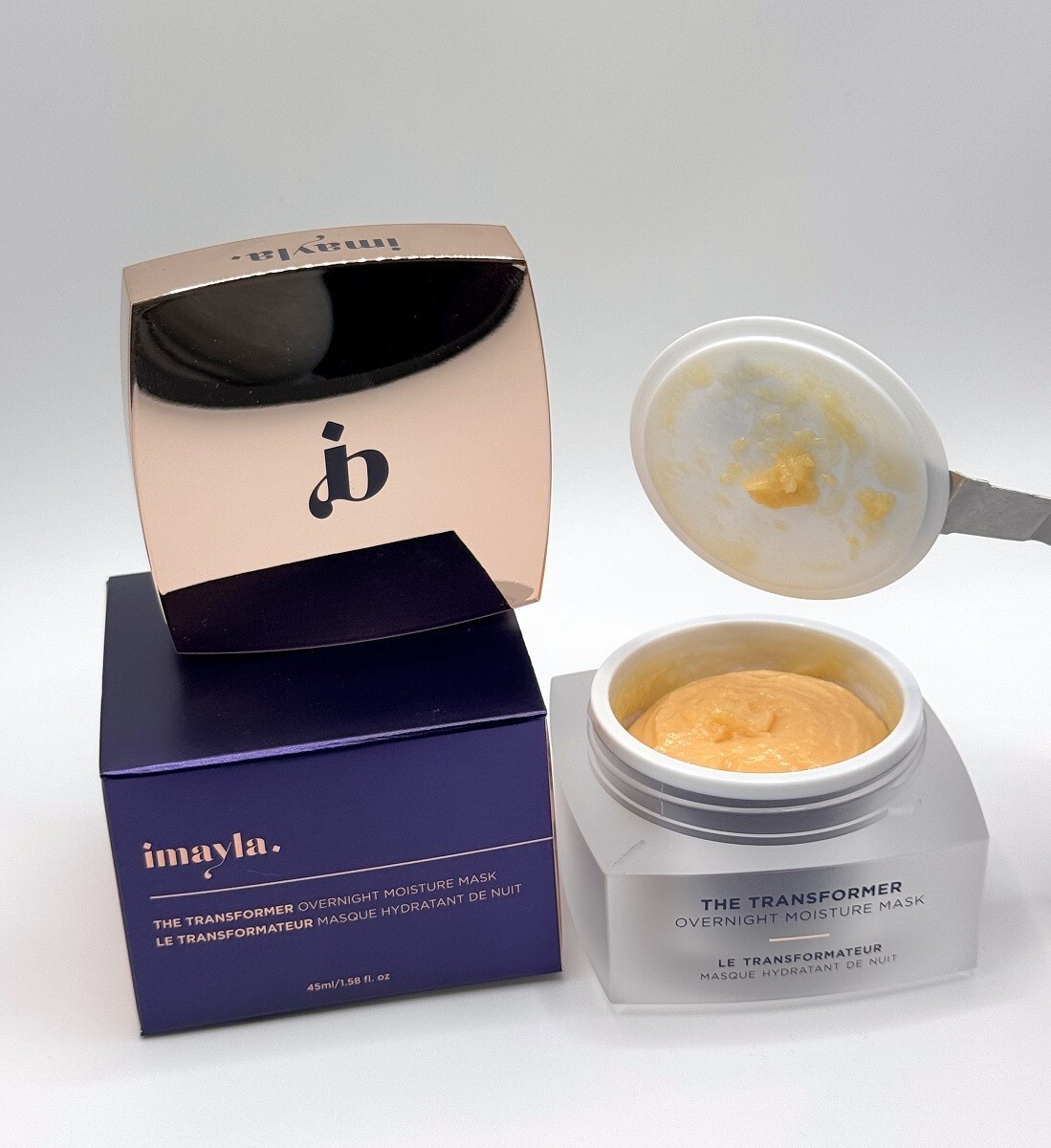 Renew Your Skin While You Sleep Wake up to visibly smoother, firmer-looking skin with Imayla The Transformer Overnight Moisture Mask, a cutting-edge skincare solution that works while you rest. This ultra-rich hydrator and overnight mask in one is designed to lock in moisture and support your skin's natural regeneration process. Its advanced formula is enriched with hyaluronic acid, known for its powerful hydrating properties, leaving your skin plump, dewy, and refreshed by morning.