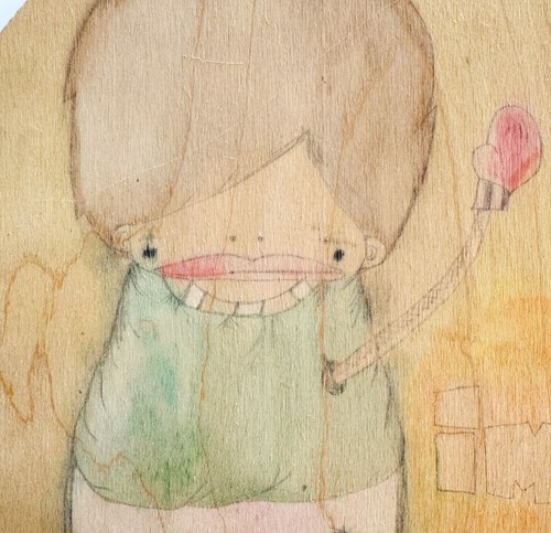 Primary image for Immigrant Original Art Signed Jask B 2006 On Wood Round Watercolor SS