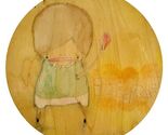 Immigrant Original Art Signed Jask B 2006 On Wood Round Watercolor SS