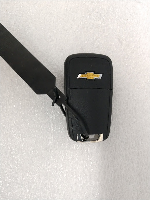 This OEM GM remote (aka: fob) has never been programmed to a vehicle. It is an assembly line left-over. It has four buttons on it: Lock, Unlock, Hatch and Panic. The blade has been removed, so you will need to swap your blade into it. This is easily accomplished by driving out the pin on the blade housing with a 1/16th punch. (Or you can check out our other listings with the blade included.)