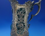 Captivating Imperial Queen by Whiting green glass water pitcher with sterling silver overlay marked #3083, circa 1890. This piece measures 10 1/4" tall x 9 1/2". It is not monogrammed and is in good vintage condition as shown in the photos, with a hairline crack in the glass (not noticeable). Impressive piece!