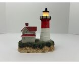 Crafted from hand-painted resin, it features the classic red-and-white striped tower and the attached keeper?s house with red roof and white siding. The beacon glows warmly when switched on, powered by a standard AA battery (not included).