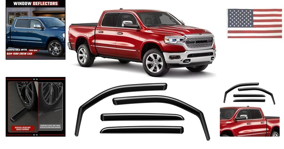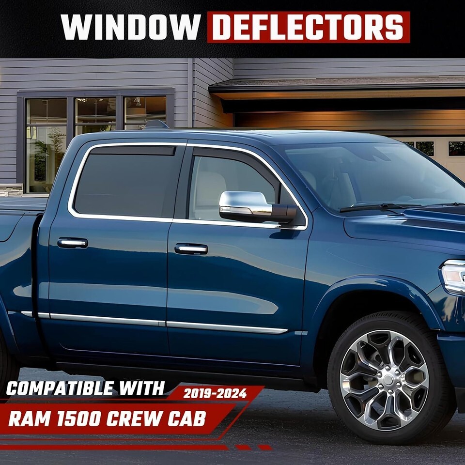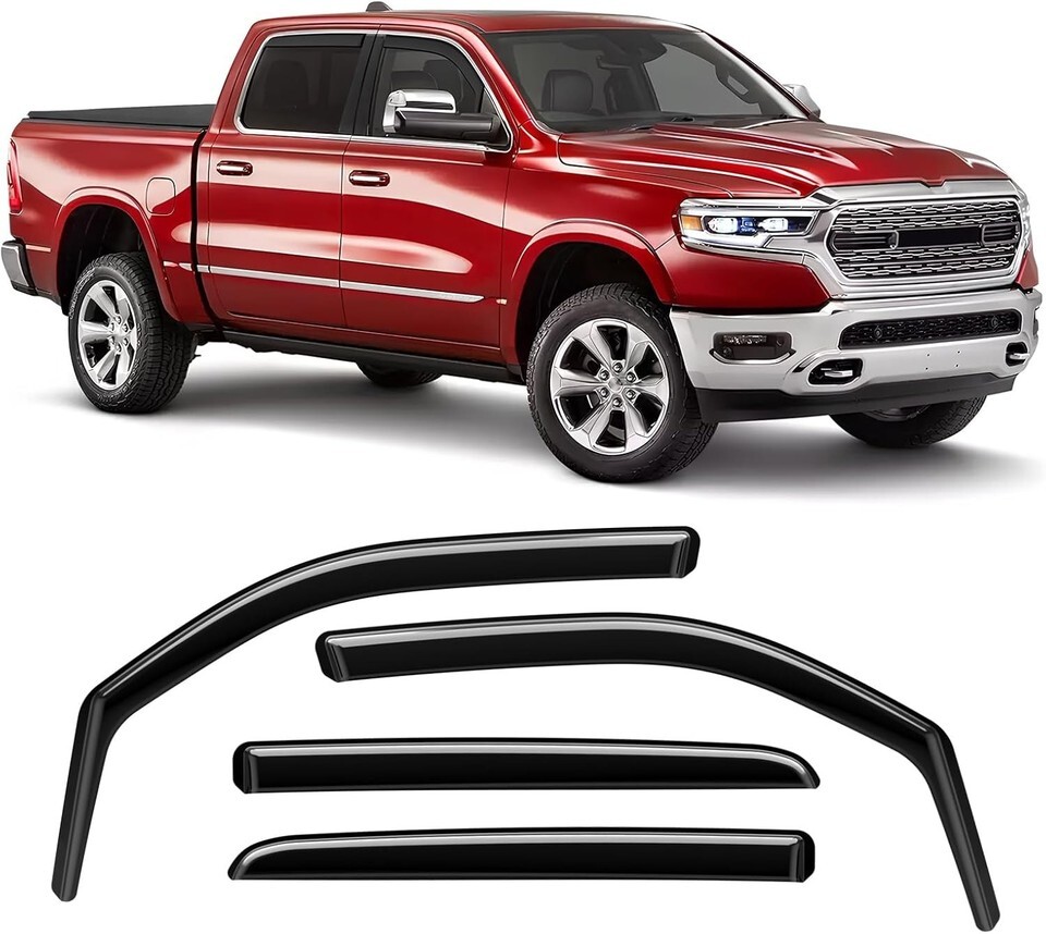 - In-Channel Rain Guards for RAM 1500 Crew Cab 2019-2024 - 4PCS Black Deflectors