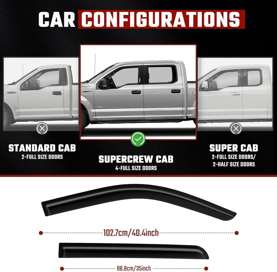 Includes four pieces: driver and passenger side window deflectors for a complete upgrade.