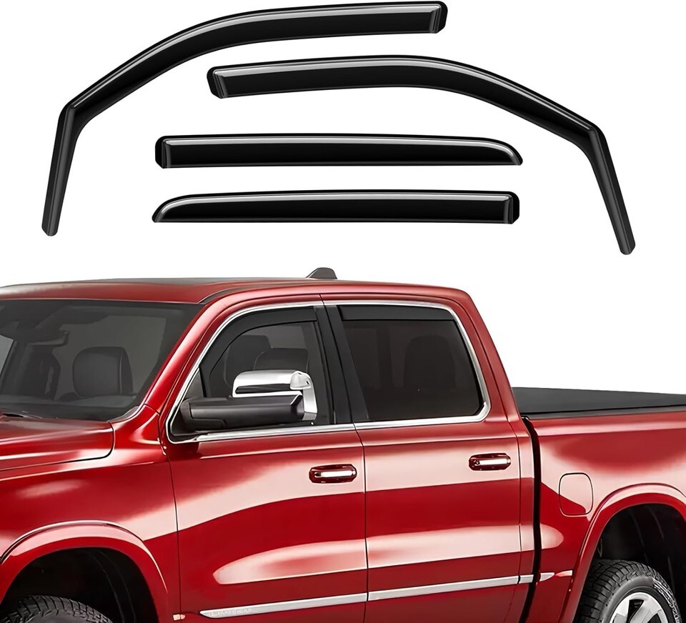 In-Channel Rain Guards for RAM 1500 Crew Cab (2019-2024) - 4PCS Black Deflectors