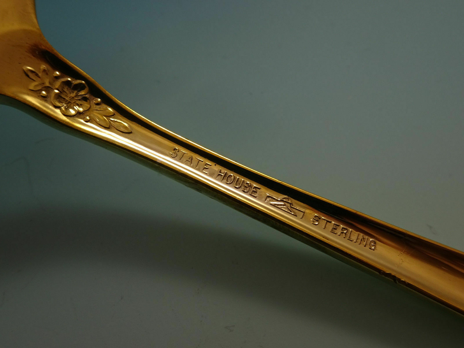 in the pattern Inaugural Vermeil (completely gold-washed) By State House. It is not monogrammed and is in excellent condition.