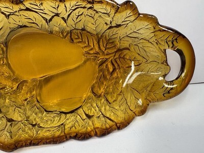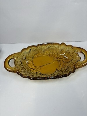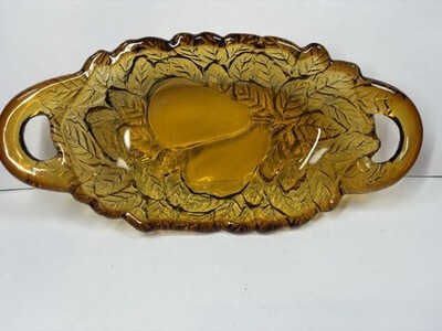 - Indiana Amber Glass Candy Dish with Pears & Leaves