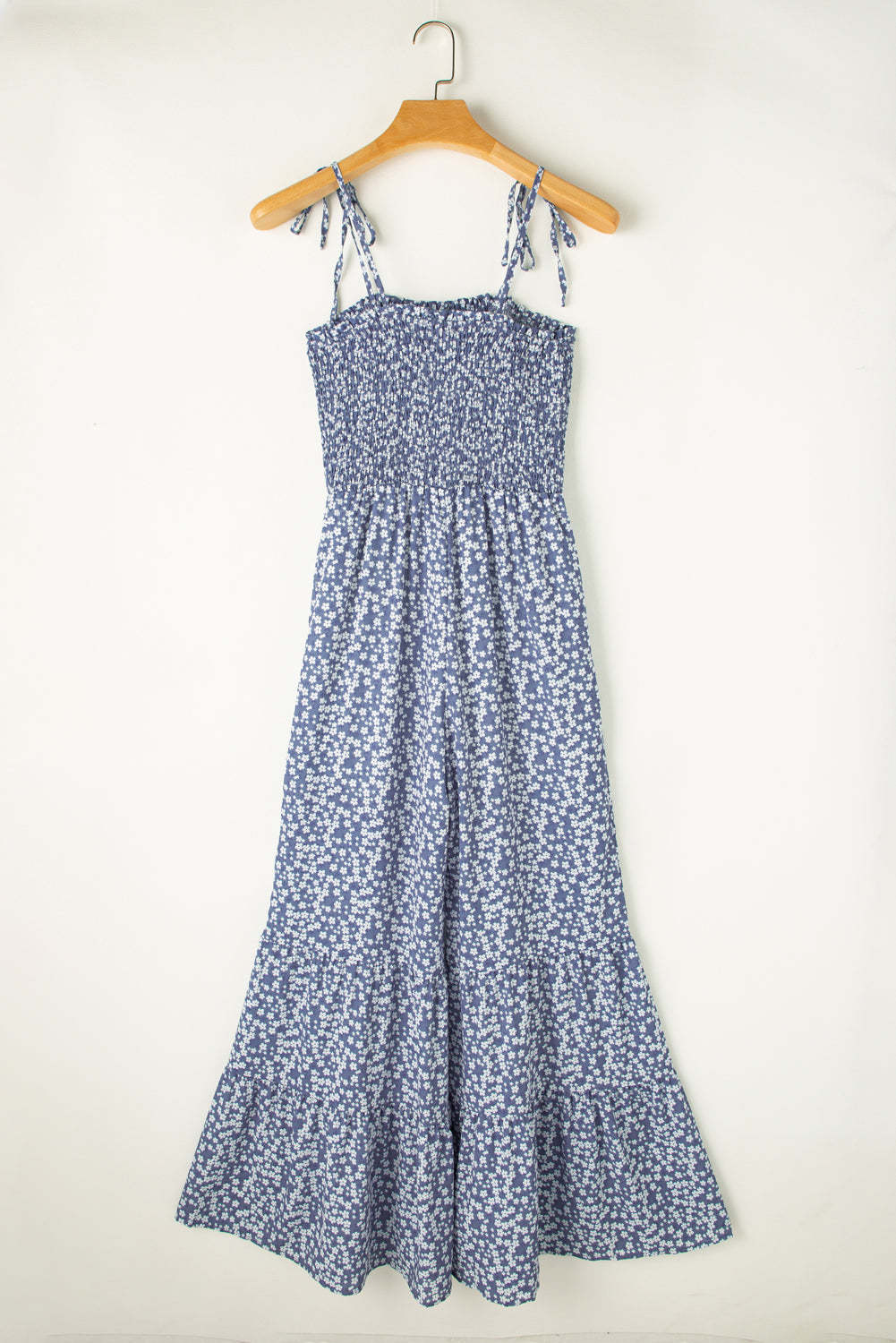 - Indie Smocked Bodice Wide Leg Floral Jumpsuit