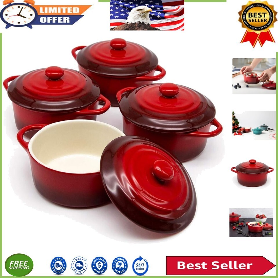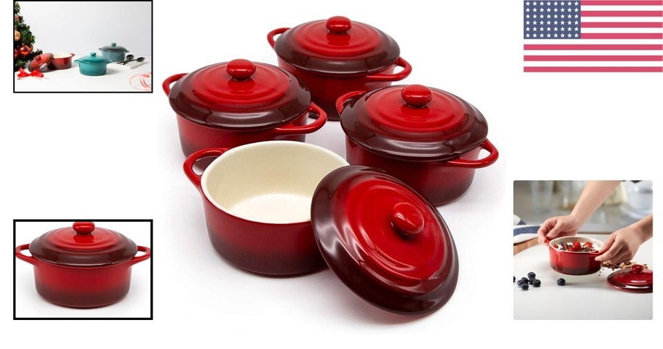- Individual Serving Cocotte Set - 12 oz Stylish Casseroles with Lids & Handles