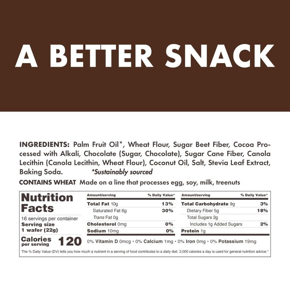 Each Wafer Contains 4g of Net Carbs, 0g Trans Fat, 120 Calories, and 5g of Fiber