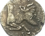 This remarkable Indo-Scythian coin replica captures the martial and cultural symbolism typical of the late Hellenistic period in Central and South Asia. On the obverse, we see a bearded, helmeted male profile, likely representing King Azes II, an Indo-Scythian ruler active around the 1st century BCE. Surrounding the portrait are Kharosthi inscriptions, a script used in the northwestern Indian subcontinent, providing important contextual links to Greco-Bactrian and Indian traditions. The style of portraiture echoes Hellenistic influences, fused with local artistic conventions, symbolizing the cultural syncretism of the time.The reverse side portrays a dynamic image of a horseman with a spear, possibly the king himself, a scene common in coins issued by Azes II. The rider, clad in armor, gallops forward with commanding presence, encapsulating both imperial strength and nomadic heritage. These horseman types were widely circulated, reflecting the military prowess and mobility of the Indo-Scythian rulers. This piece is a modern reproduction (novod?l), intended for educational or collector purposes, offering a tangible glimpse into a transitional era where Greek, Persian, and Indian influences merged on coinage and politics alike.