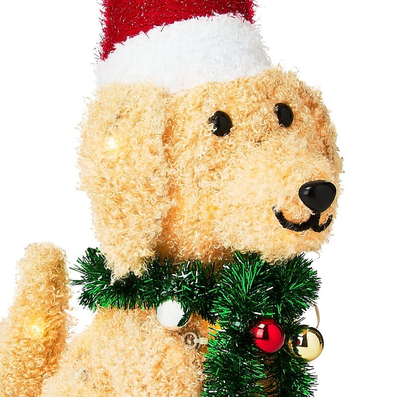 - Indoor/Outdoor Light-Up Plush Dog Christmas Decoration with 35 LED Lights, Warm
