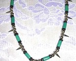 - INDUSTRIAL SPIKE BEADS & TURQUOISE BLUE WOOD BEAD ROCKER BOLD PUNK NECKLACE