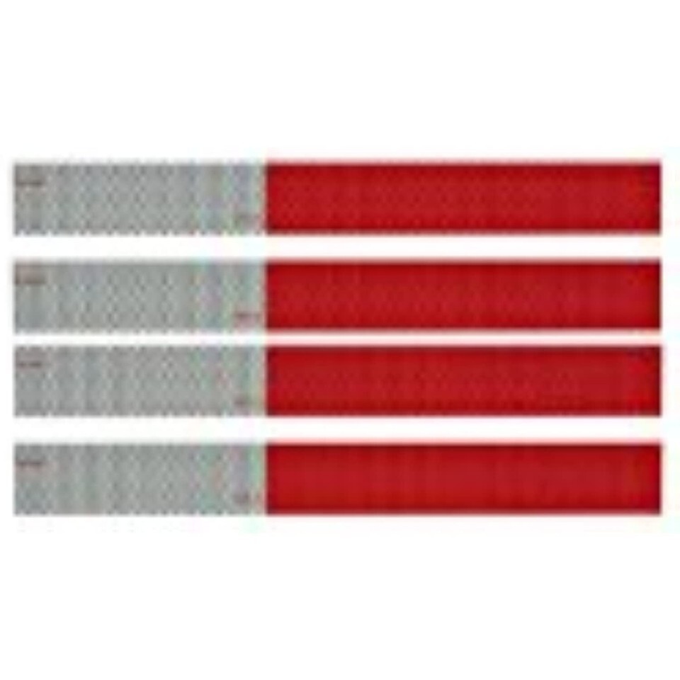 4 Pack, 12" Strip, Red Silver Reflective Tape, For Trailers As Required By The DOT, Meet Or Exceed The DOT Reflectivity Requirements. The UPC of this product is 805089465043. This product is a automotive tape. This product is manufactured in China.