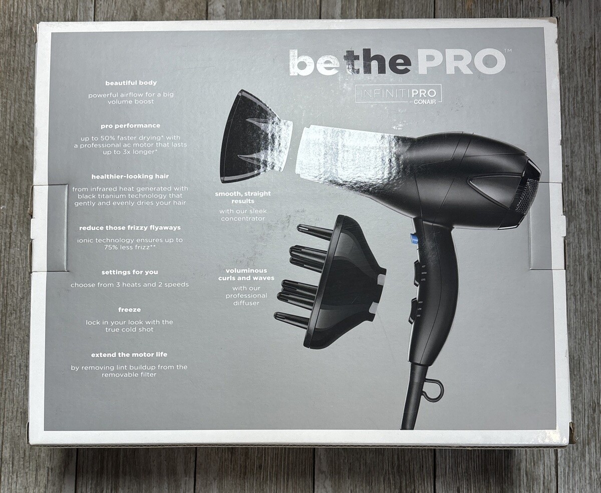 Primary image for InfinitiPRO by Conair 1875 Watt Black Titanium Hair Dryer 461N *NEW DAMAGED BOX*