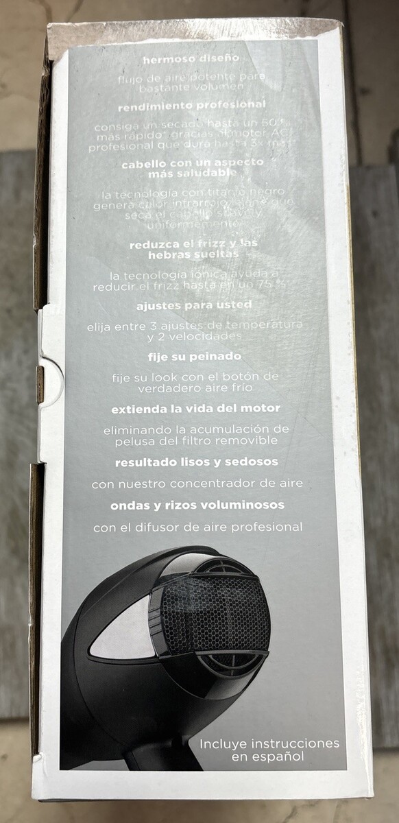 InfinitiPRO by Conair 1875 Watt Black Titanium Hair Dryer 461N *NEW DAMAGED BOX*