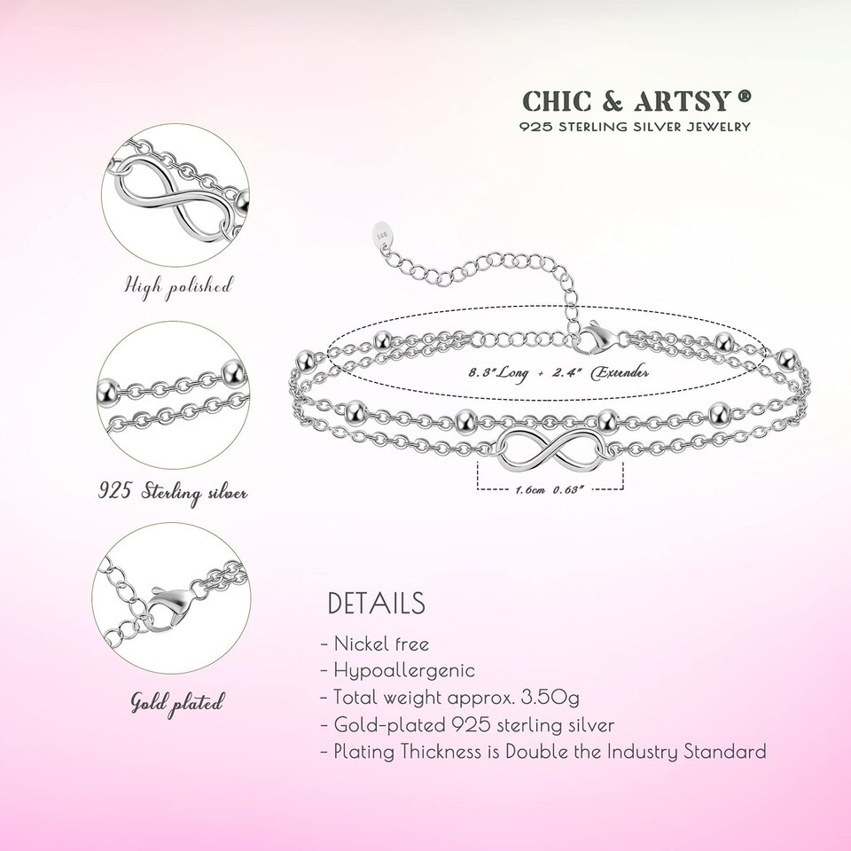 - Infinity 925 Sterling Silver Waterproof Double Layer Anklet 11 inch