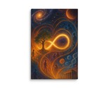 This captivating poster weaves together powerful symbols like the infinity loop, galaxies, DNA strands, the Tree of Life, and the human journey?all set in a breathtaking cosmic backdrop. A truly meaningful piece that sparks wonder, reflection, and conversation.