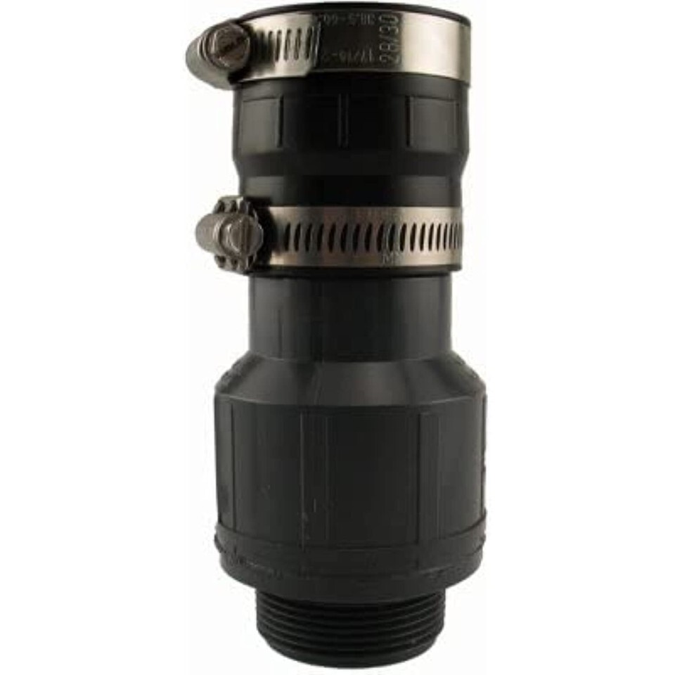 1-1/2" Male Pipe Thread, Plastic Inline Sump Check Valve, With 1-1/4" x 1-1/2" Boot With Flexible Connector On The Discharge Side, Fits 1-1/2" Pump Discharge Threads, Constructed From Durable Thermoplastic Material, Connects Directly Into Sump Pump D
