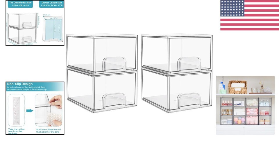 Elevate your home organization with our Innovative 4-Piece Clear Acrylic Storage System, designed to bring a touch of elegance and functionality to any room. Create a clean, stylized environment with easily identifiable storage solutions that keep your essentials in while exuding sophistication. Say goodbye to clutter and welcome an organized lifestyle today!