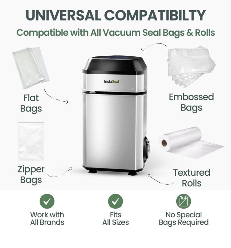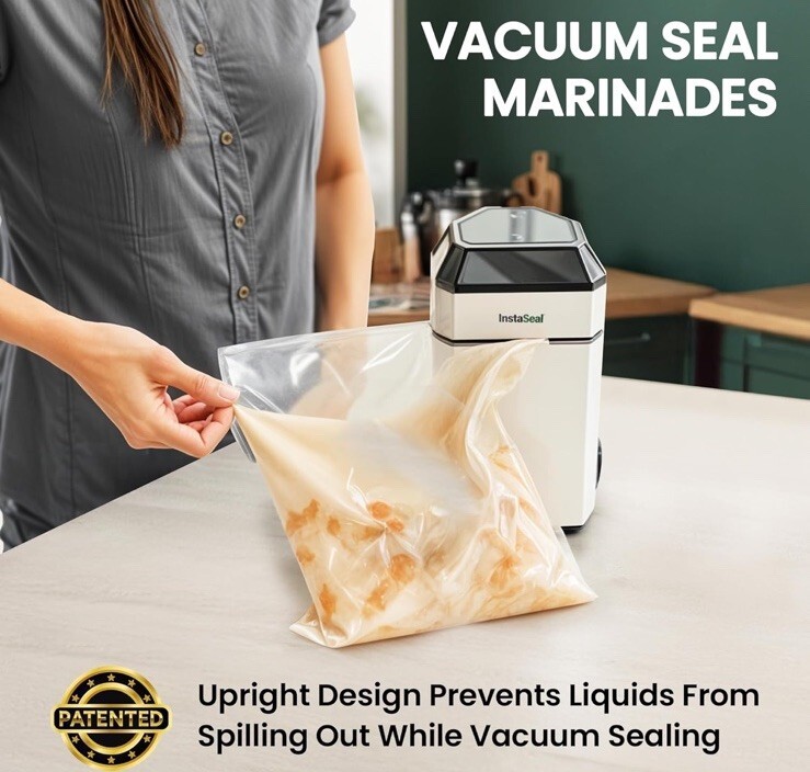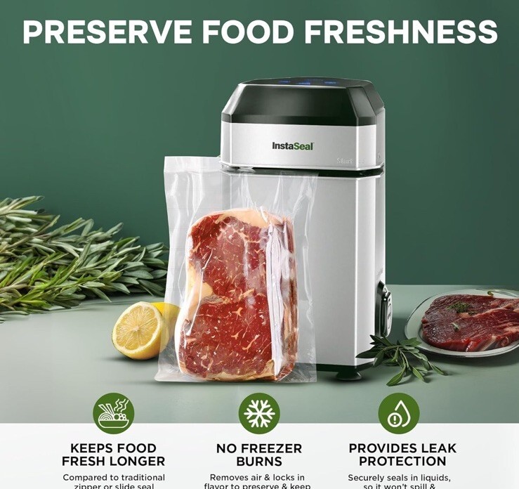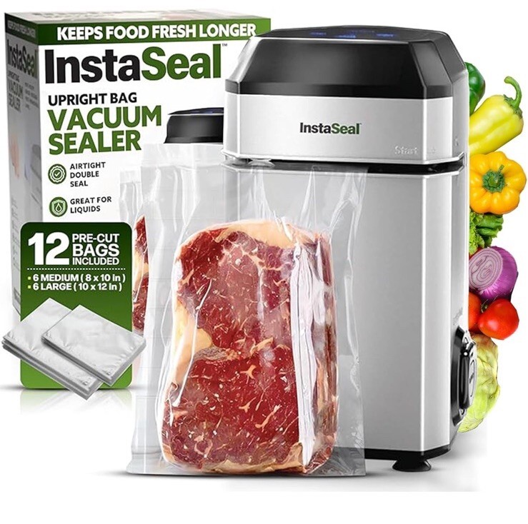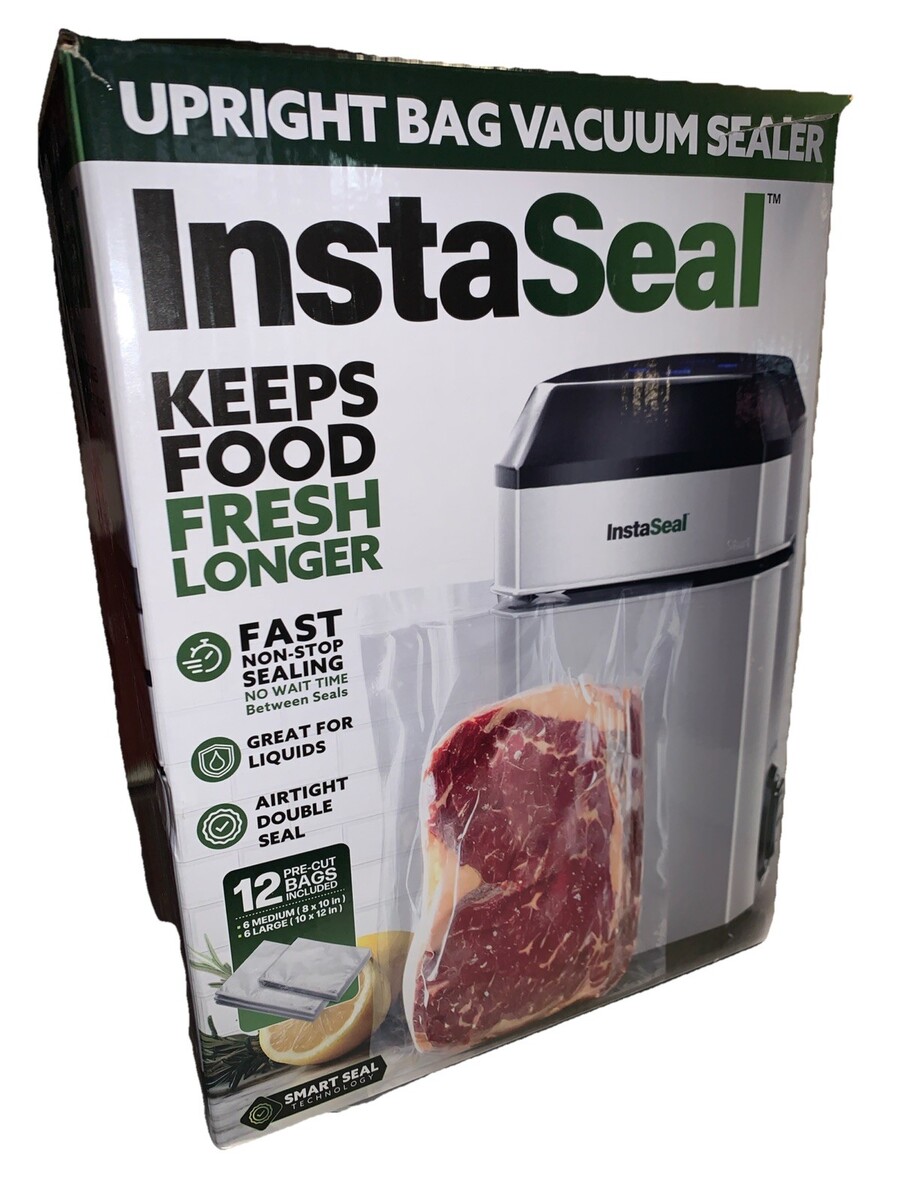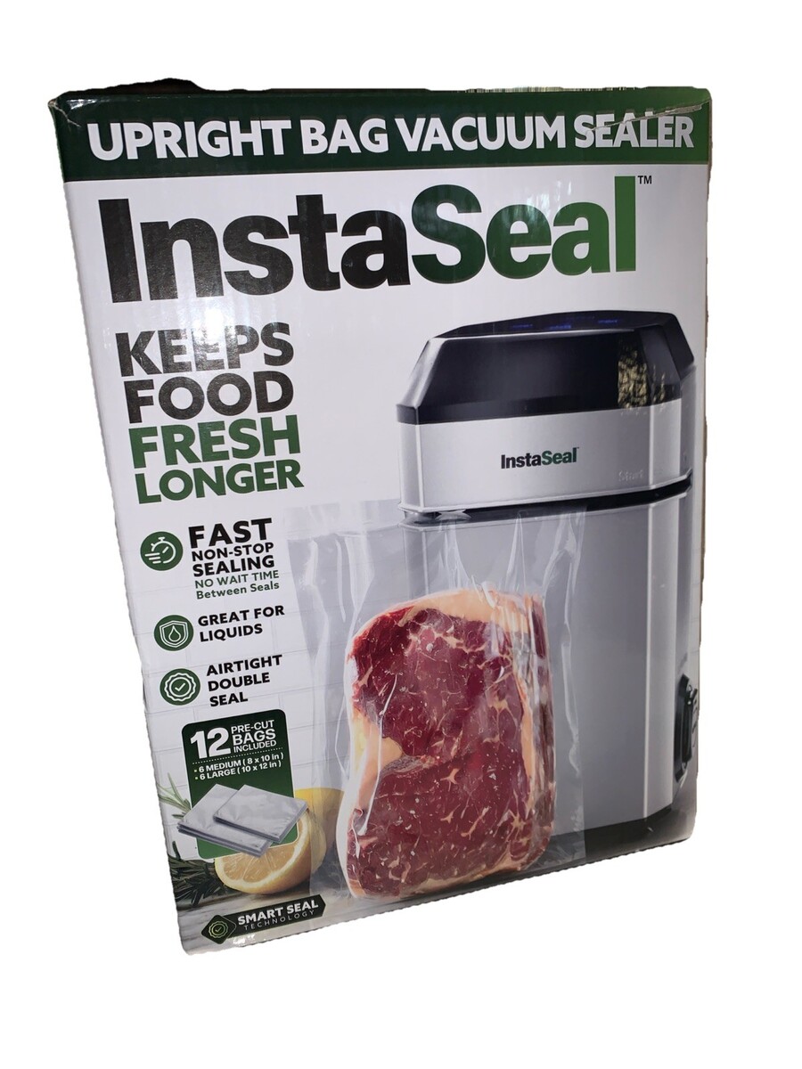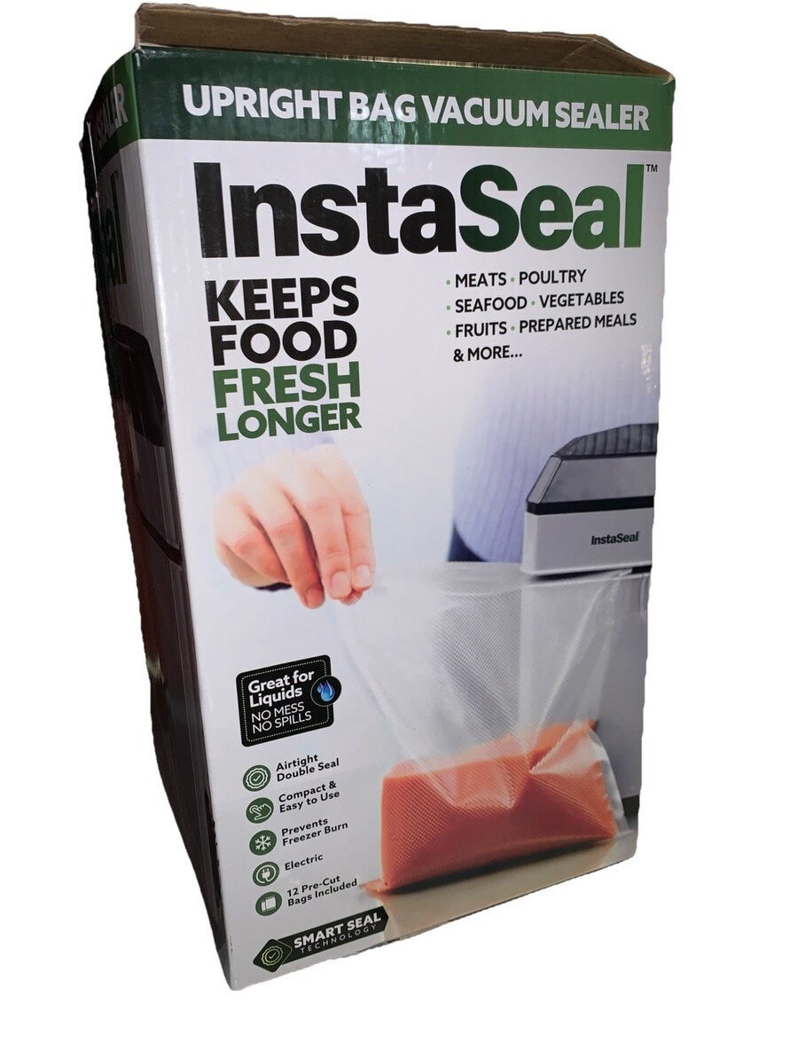 - InstaSeal Food Vacuum Sealer Machine Upright Food Saver, Seal Liquids w/ 12 Bags