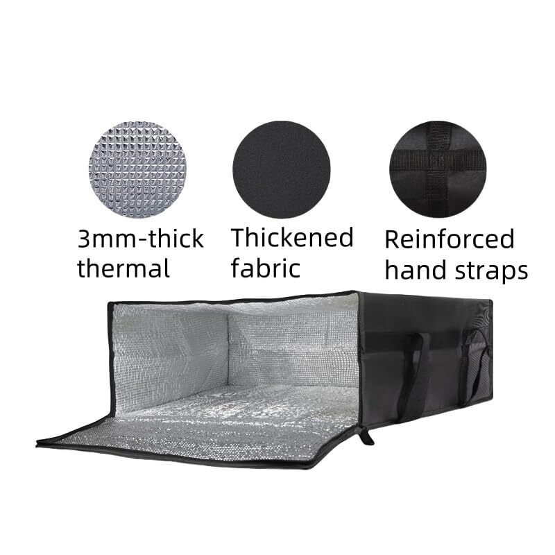 ?XXXL LARGE CAPACITY? Spacious 20"W x 20"D x6"H interior effortlessly fits 3 boxes of 18-inch pizza! Perfect for high-volume food delivery and bulk grocery shopping. The optimized dimensions ensure perfect fit while saving valuable vehicle space.