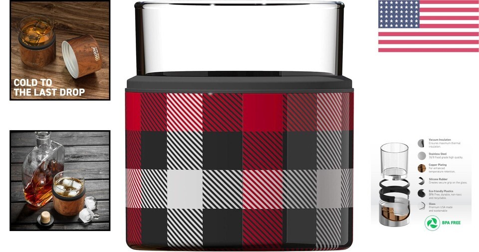 - Insulated Plaid Whiskey Glass with Stainless Steel Sleeve - Perfect Holiday Gift