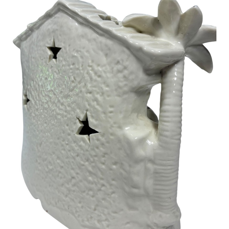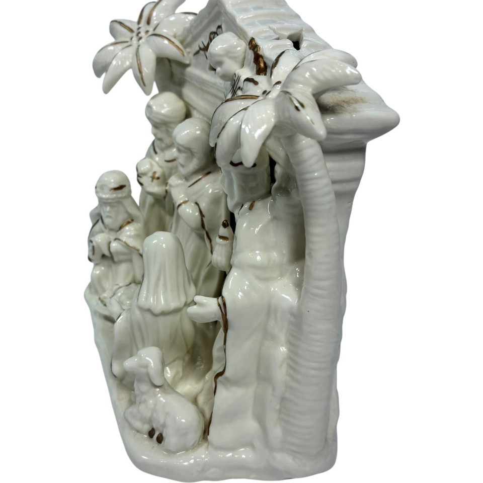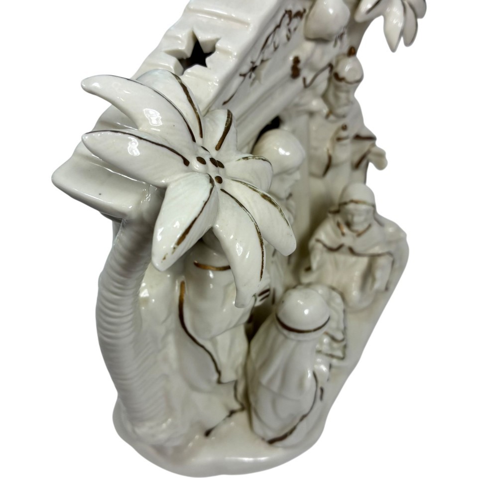 International Bazaar Ceramic Nativity Ivory Colored And Trimmed In Gold - EUC Can be lit up by small candle or clip light (bottom is prepared for that) Buy with confidence. Check out our reviews.