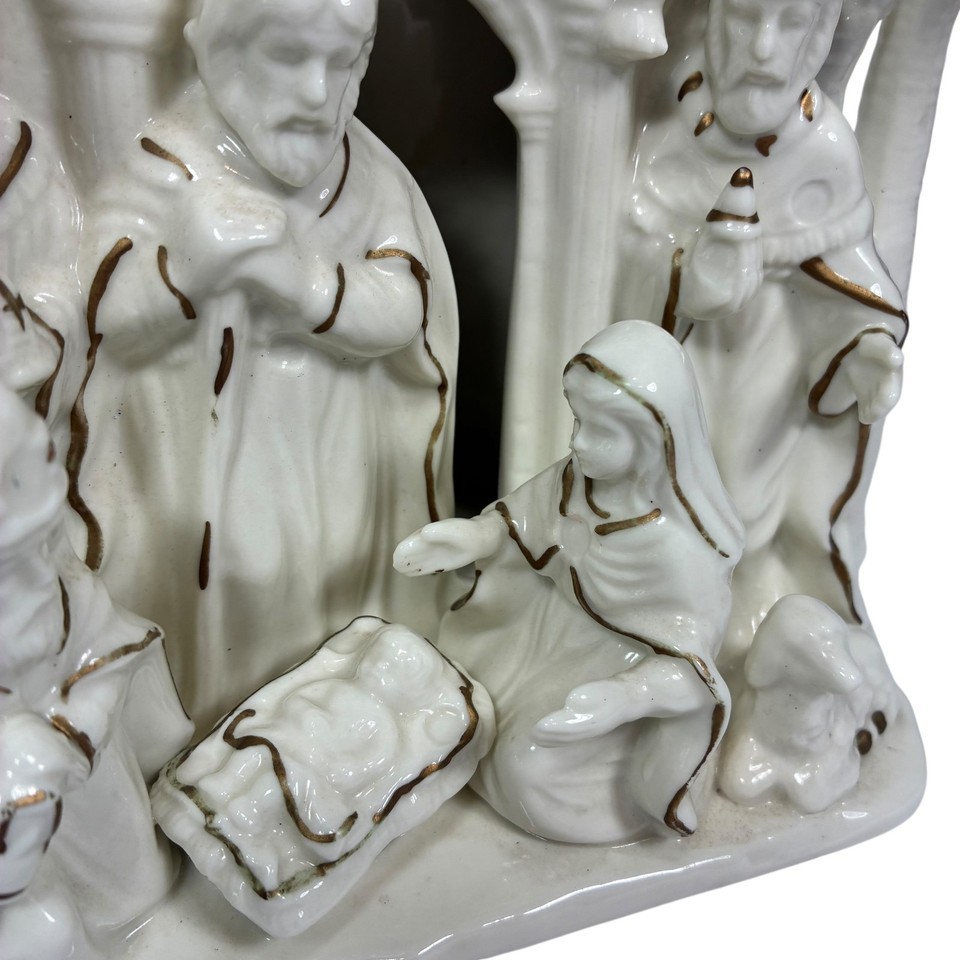 Primary image for International Bazaar Ceramic Lighted Nativity Ivory Colored And Trimmed In Gold