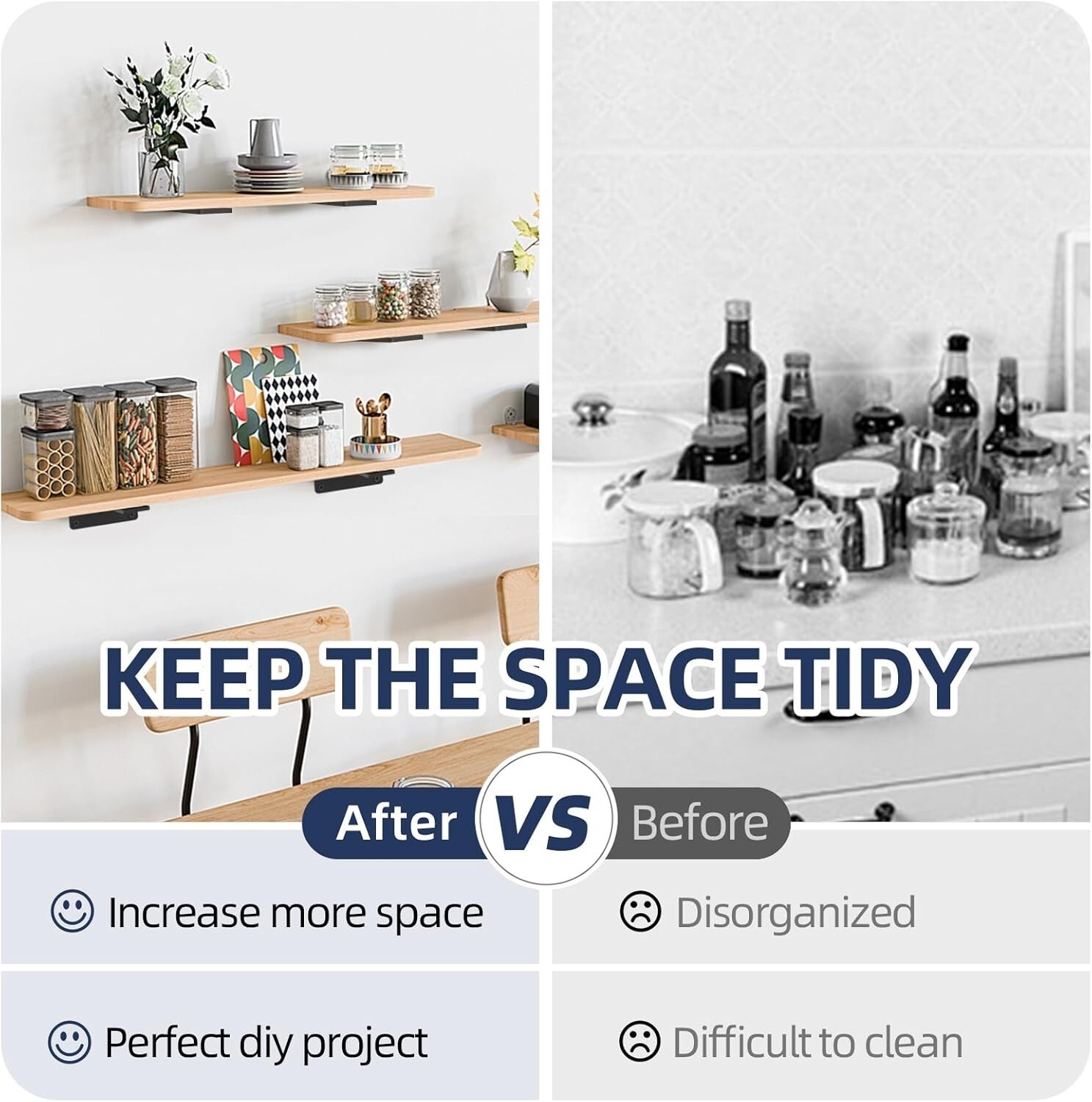 Discover the ultimate in shelf aesthetics with our Real Hidden Brackets. Designed without lips for a seamless floating appearance, these brackets allow your planks to hide their support base, creating an elegant, floating illusion. Crafted from heavy-duty metal with a textured, anti-scratch, and anti-rust finish, each bracket boasts a robust 150 lbs weight capacity per pair, ensuring durability and strength. Easy to install with included hardware, these supports offer two versatile mounting options?upward or downward?making your DIY project straightforward. Perfect for enhancing storage in any space, from kitchens to warehouses, and even supporting creative ideas like a cat climbing wall. Elevate your home organization effortlessly with our sleek, reliable floating brackets. To ensure fast and reliable delivery, we work with multiple fulfillment partners and suppliers. Depending on availability and location, your order may ship from different warehouses or arrive in packaging that varies from item to item. Tracking details are typically provided shortly after shipment, and customer satisfaction remains our top priority. Please note that due to carrier policies and regional regulations, certain items may not be eligible for delivery to specific states or territories.